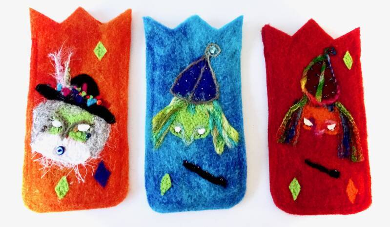 Hier einige Beispiele von den gefilzten Brillenetuis und Nateltäschchen