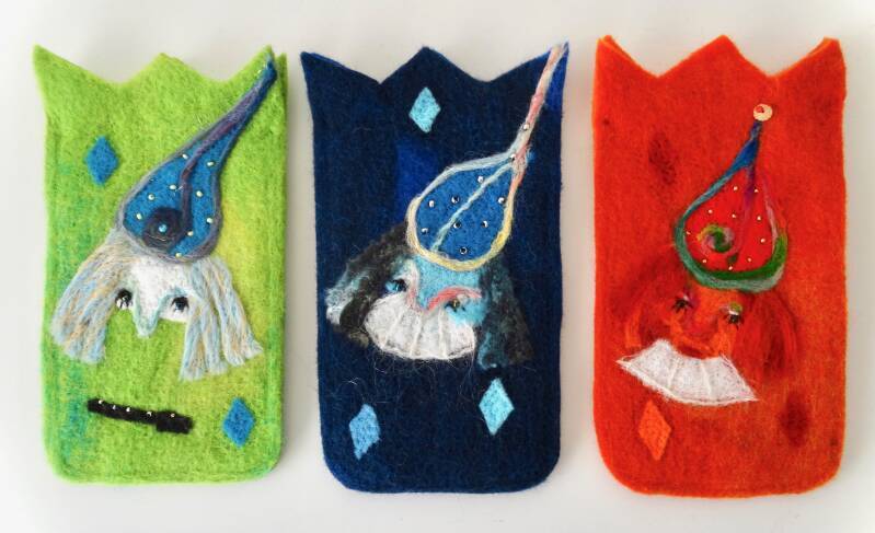 Gabriella ' s Kreativität erweitert sich in ihren Seiden und Filzarbeiten.
